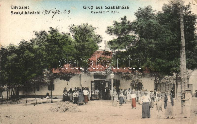 Leírás: Szakálháza, Sacalaz; P. Kühn üzlete / shop (fa)