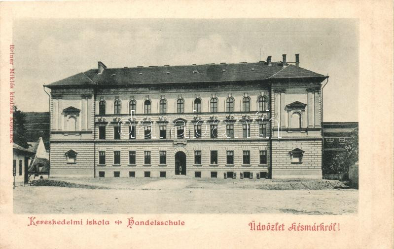 Leírás: Késmárk, Kezmarok; Kereskedelmi iskola, kiadja Reiner Miklós / business school