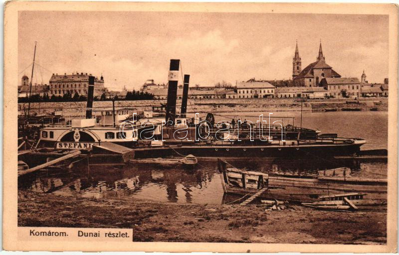 Komárom, Komárno; Dunai részlet, Stefánia gőzhajó, hátoldalon tábori posta bélyegzéssel / Danube detail, Steam Ship Stefánia, with field post cancellation on backside