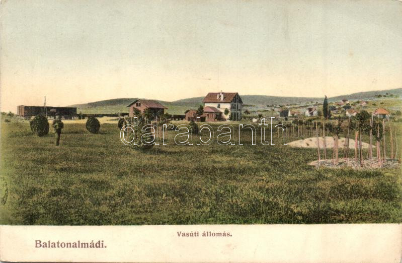 Balatonalmádi, Vasútállomás; Pósa Endre kiadása https://www.darabanth.com/hu/275-Gyorsarveres/275.0/Kepeslapok/Magyarorszag~400010/Balatonalmadi-Vasutallomas-Posa-Endre-kiadasa~II1407000