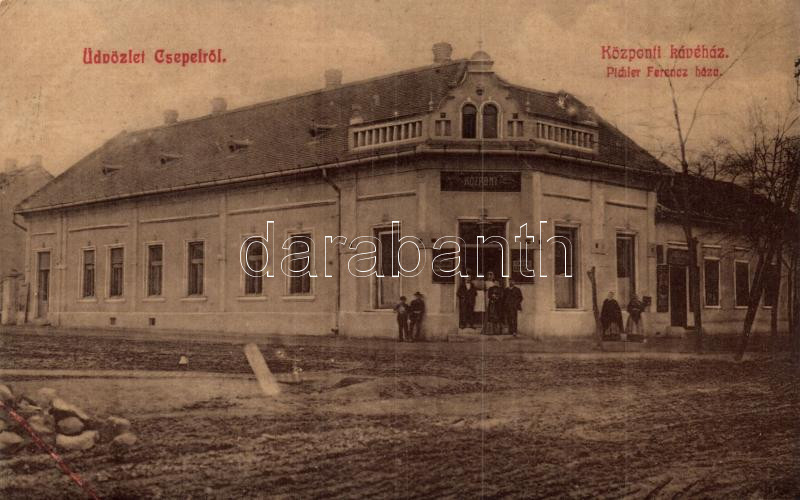 Budapest XXI. Csepel, Központi kávéház, Pichler Ferenc háza, kiadja Pi... https://www.darabanth.com/hu/275-Gyorsarveres/275.0/Kepeslapok/Magyarorszag~400010/Budapest-XXI-Csepel-Kozponti-kavehaz-Pichler-Ferenc-haza-kiadja-Pichler-Ferenc-r~II1406175