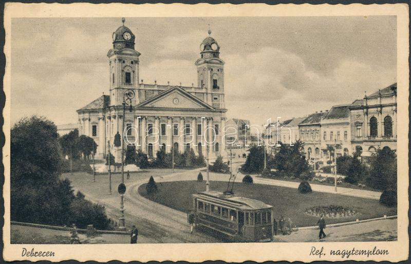 Debrecen, Református nagytemplom, villamos https://www.darabanth.com/hu/275-Gyorsarveres/275.0/Kepeslapok/Magyarorszag~400010/Debrecen-Reformatus-nagytemplom-villamos~II1405492