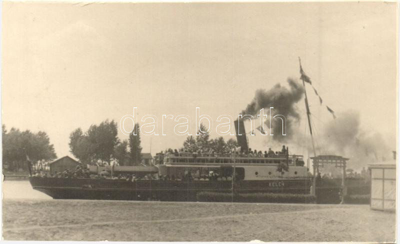 Leírás: Siófok, Kelén gőzhajó a part közelében, a hátoldalon Juhász József épület-üveges és képkeretező-mester, photo