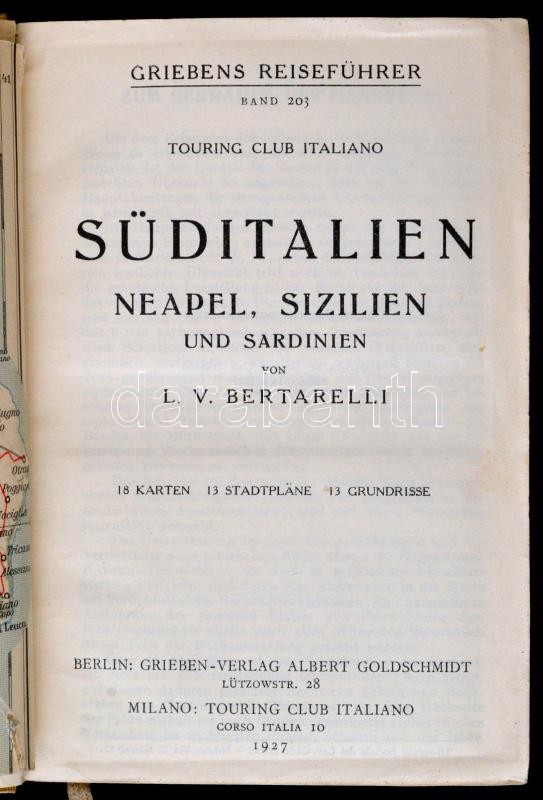 Grieben's Reiseführer. Süd-Italien / Dél-Olaszország 1930. Utikönyv sok térképpel, szép állapotban / with many maps in full linen bindig, in good condition