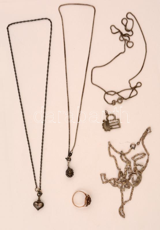 Ezüst(Ag) nyaklánc, 4 db, gyűrű, medál, jelzett, br: 35,1 g https://www.darabanth.com/hu/275-Gyorsarveres/275.0/Nemesfem-Disztargyak-Orak-es-Ekszerek/Nemesfem-Disztargyak-Orak-es-Ekszerek~400108/EzustAg-nyaklanc-4-db-gyuru-medal-jelzett-br-35-1-g~II1408296
