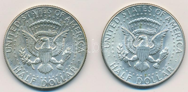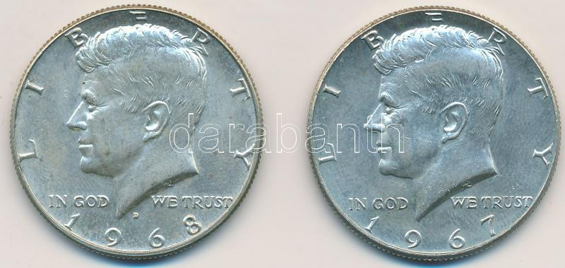 Amerikai Egyesült Államok 1967. 1/2$ Ag "Kennedy" + 1968D 1/2$ Ag "Kennedy" T:2 USA 1967. 1/2 Dollar Ag "Kennedy" + 1968D 1/2 Dollar Ag "Kennedy" C:XF Krause KM#202a