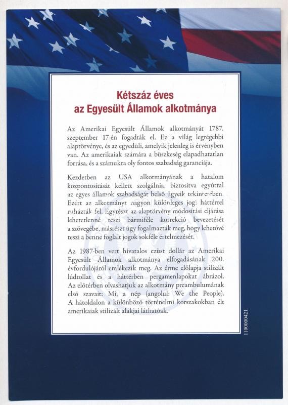 Amerikai Egyesült Államok 1987S 1$ Ag "Alkotmány 200. évfordulója" tanúsítvánnyal T:PP