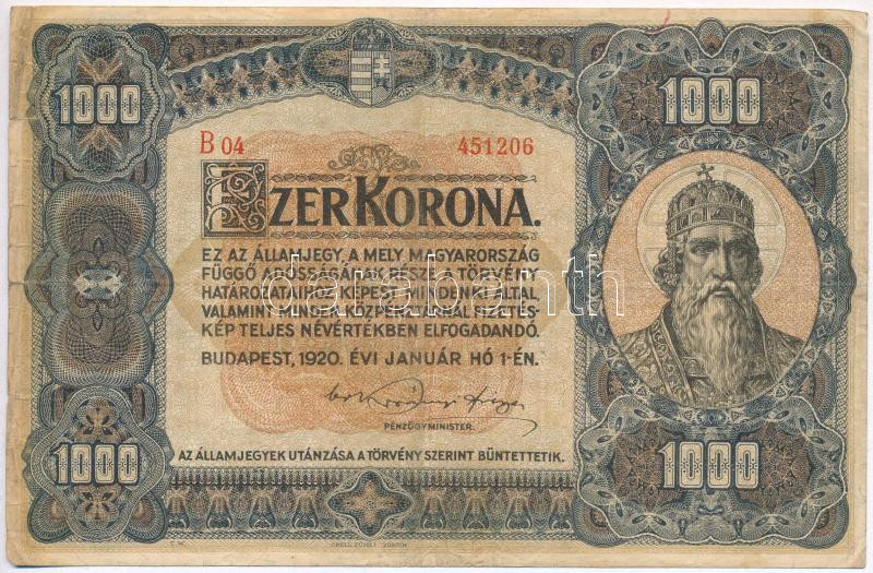 Adamo K36 https://www.darabanth.com/hu/275-Gyorsarveres/275.0/Numizmatika/Magyar-bankjegyek~300007/1920-1000K-Orell-Fussli-Zurich-TIII-III---Adamo-K36~II1403758