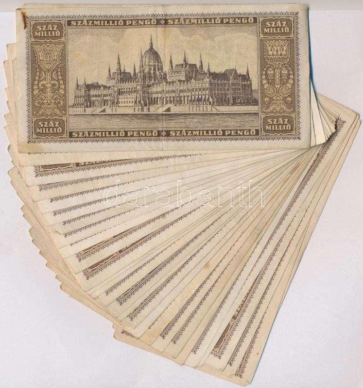 1946. 100.000.000P (30x) T:III https://www.darabanth.com/hu/275-Gyorsarveres/275.0/Numizmatika/Magyar-bankjegyek~300007/1946-100000000P-30x-TIII~II1407059