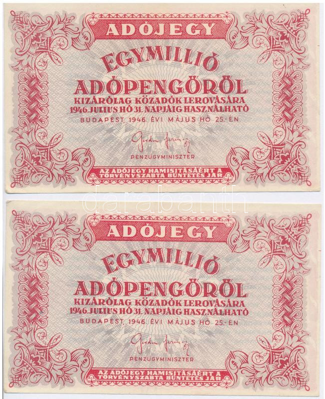 Leírás: 1946. 1.000.000AP sorozat- és sorszám nélkül (2x) T:I-