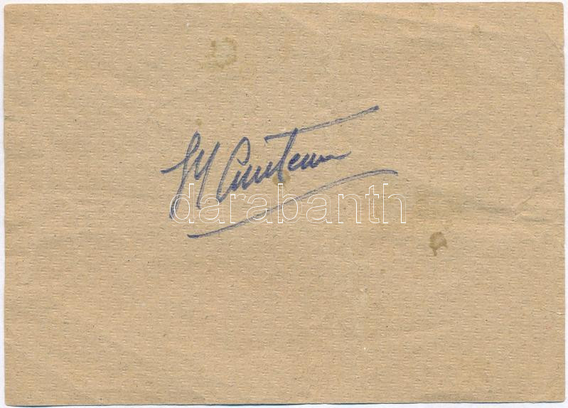 Jacques-Yves Cousteau (1910-1997) óceánkutató aláírása a kesztölci tapétagyár termékmintáján /