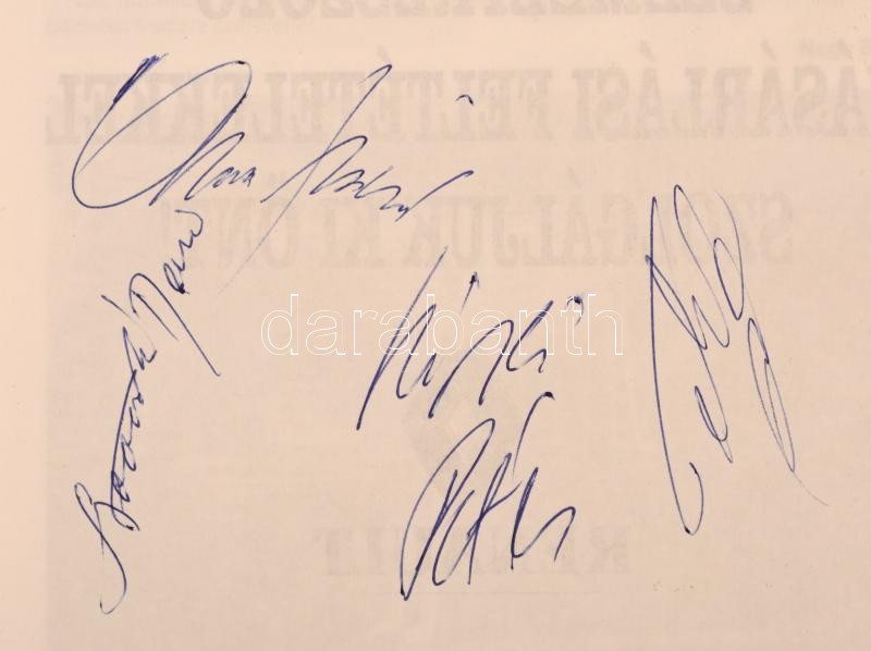 Novák Dezső, Albert Flórián, Lipcsei Péter és Telek András labdarúgók aláírása a Nagy Béla: A Fradi futballtemploma című könyvben. Bp., 1994. Kiadói papírkötés, kissé kopottas állapotban.