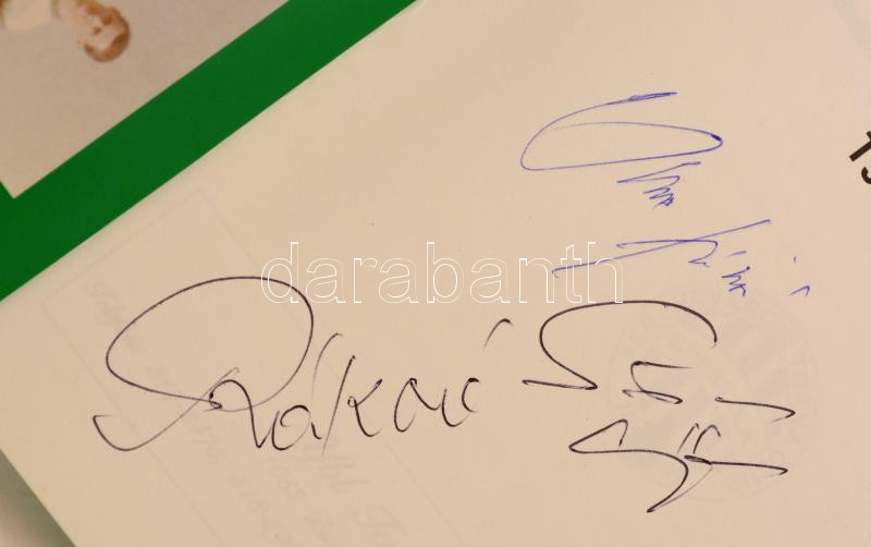 Orosz Pál, Rákosi Gyula és Albert Flórián aláírása a Nagy Béla: Aranylabdás Albert Flórián és "aranycsapatbeli" kortársai. Fradisták futballmezben III. 1950-1968. című könyvben. Bp., 2002, Ybl Tervező Kft. Kiadói papírkötés, kissé kopottas állapotban.