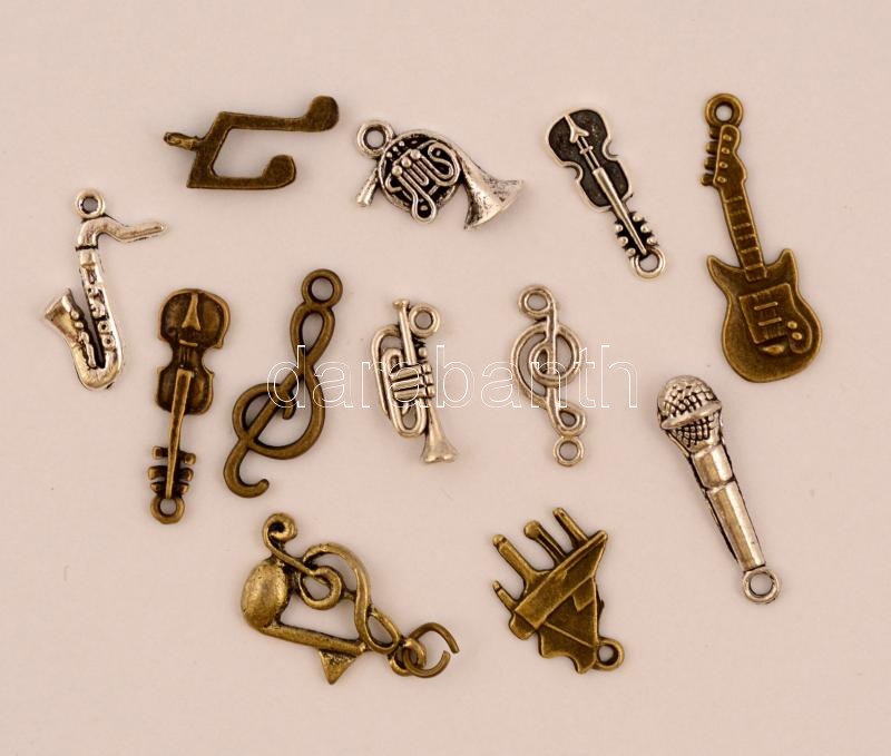Leírás: 12 db zenével kapcsolatos kisméretű medál