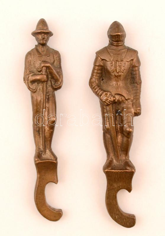 Leírás: 2 db figurális sörnyitó, bronz, h:10,5 cm