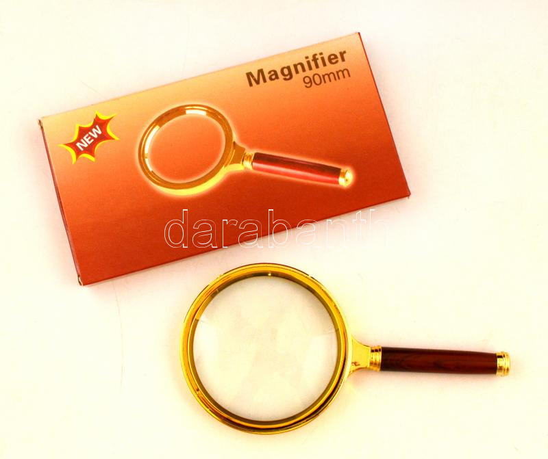 Leírás: 90 mm-es nagyító eredeti dobozában, újszerű állapotban