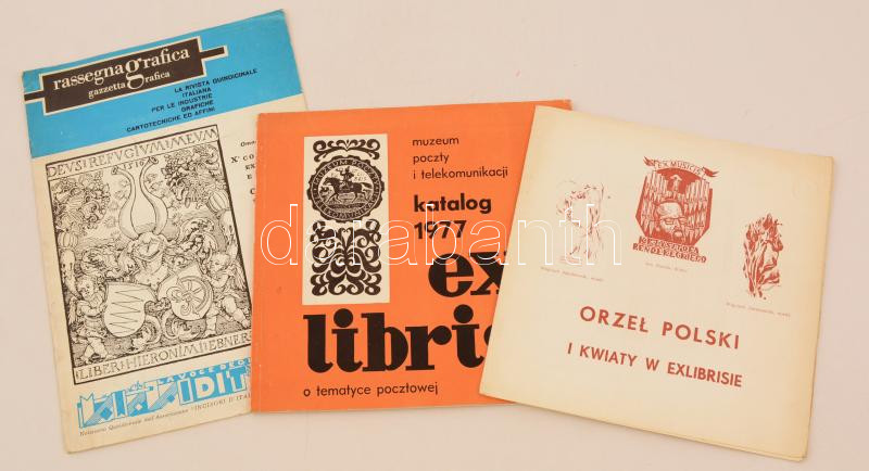 Ex librisekről szóló katalógusok, 3 db, lengyel nyelven, sok érdekes adattal, és illusztrációkkal. Különféle kiadásban, papír kötésben, változó állapotban. / Ex libris Catalogues, 3 pc, in polish language, paperbinding, with a lot of interesting informations, and illustrations.