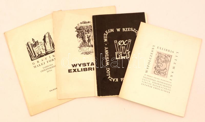 Ex librisekről szóló katalógusok, 4 db, lengyel nyelven, sok érdekes adattal, és illusztrációkkal. Különféle kiadásban, papír kötésben, változó állapotban. / Ex libris Catalogues, 4 pc, in polish language, paperbinding, with a lot of interesting informations, and illustrations.