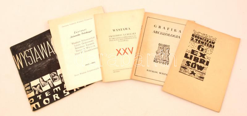 Ex librisekről szóló katalógusok, 5 db, lengyel nyelven, sok érdekes adattal, és illusztrációkkal. Különféle kiadásban, papír kötésben, változó állapotban. / Ex libris Catalogues, 5 pc, in polish language, paperbinding, with a lot of interesting informations, and illustrations.