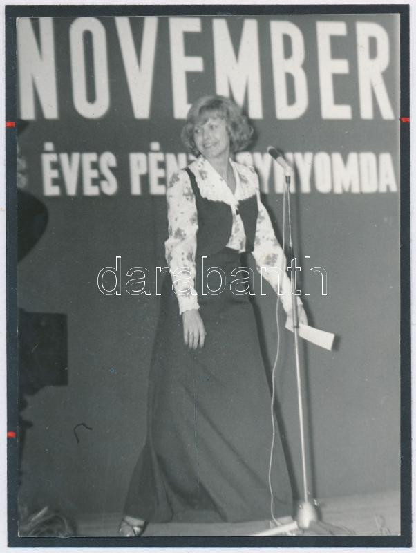 Takács Mari műsort vezet, fotó, kartonra ragasztva, 12×9 cm https://www.darabanth.com/hu/276-Gyorsarveres/276.0/Festmeny-mutargy-papirregiseg-egyeb/Foto~200020/Takacs-Mari-musort-vezet-foto-kartonra-ragasztva-12C3979-cm~II1410000