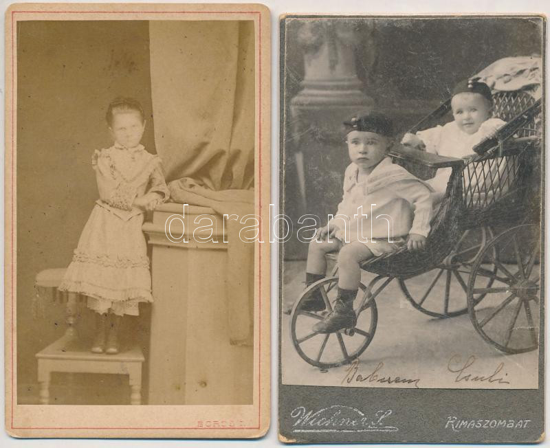 cca 1900 Gyermek portrék, 2 db, keményhátú fotók, Wichner J. (Rimaszob... https://www.darabanth.com/hu/276-Gyorsarveres/276.0/Festmeny-mutargy-papirregiseg-egyeb/Foto~200020/cca-1900-Gyermek-portrek-2-db-kemenyhatu-fotok-Wichner-J-Rimaszobat-Boros-Imre-Keszthel~II1412127