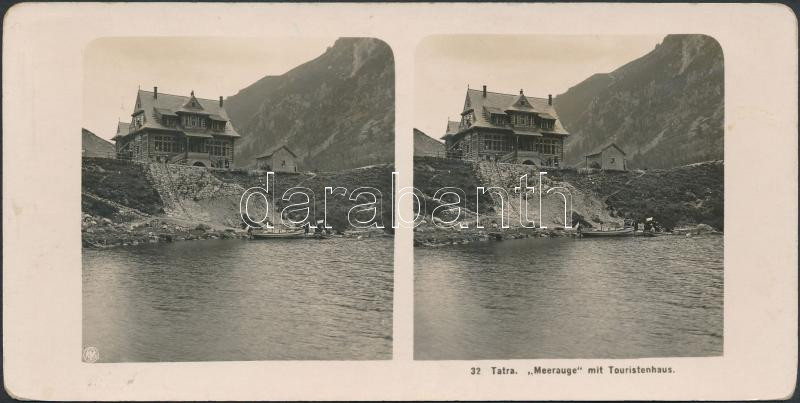 cca 1915 Tátra Tengerszem / Halastó, Rysy / Meerauge turistaházzal. ... https://www.darabanth.com/hu/276-Gyorsarveres/276.0/Festmeny-mutargy-papirregiseg-egyeb/Foto~200020/cca-1915-Tatra-Tengerszem-Halasto-Rysy--Meerauge-turistahazzal-Sztereofoto-9C39718-cm~II1415155