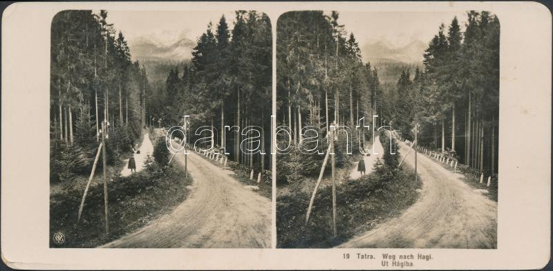 cca 1915 Tátra, Út Hágiba. Sztereófotó 9×18 cm https://www.darabanth.com/hu/276-Gyorsarveres/276.0/Festmeny-mutargy-papirregiseg-egyeb/Foto~200020/cca-1915-Tatra-Ut-Hagiba-Sztereofoto-9C39718-cm~II1415165