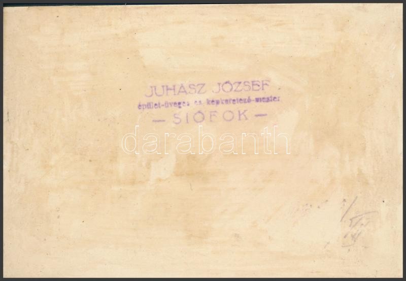 Leírás: cca 1930 A Szigliget motoros hajó a siófoki mólónál. Feliratozott, hátoldalán végig ragasztónyom, 9.5×14 cm