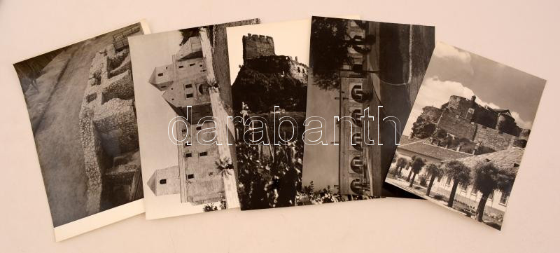 Leírás: cca 1960-1970 Magyarországi várak(Boldogkővár, Szigetvár, Várpalota, Esztergom, Várgesztes), 5 db fotó, 18x13 és 23x17 cm