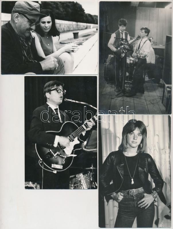 cca 1960 Koncz Zsuzsa (19 db.), és az Illés zenekar (Szörényi Levente (2 db), Bródy Sándor - Szörényi Örs (1db.)), valamint egy ismeretlen művésznő fotója (1 db.), összesen 23 db., 14x9 cm és 9x12 cm közötti méretben.