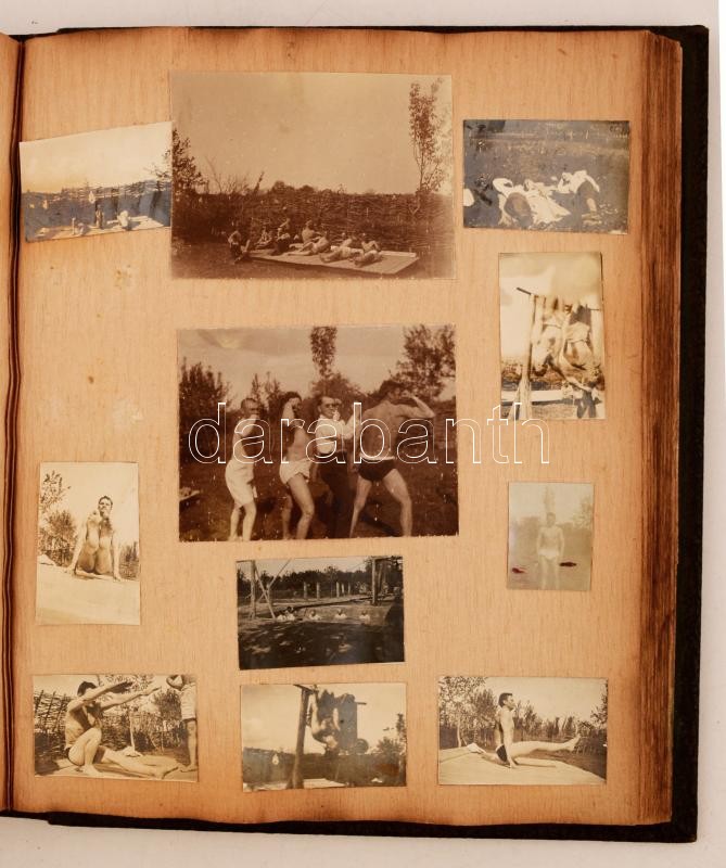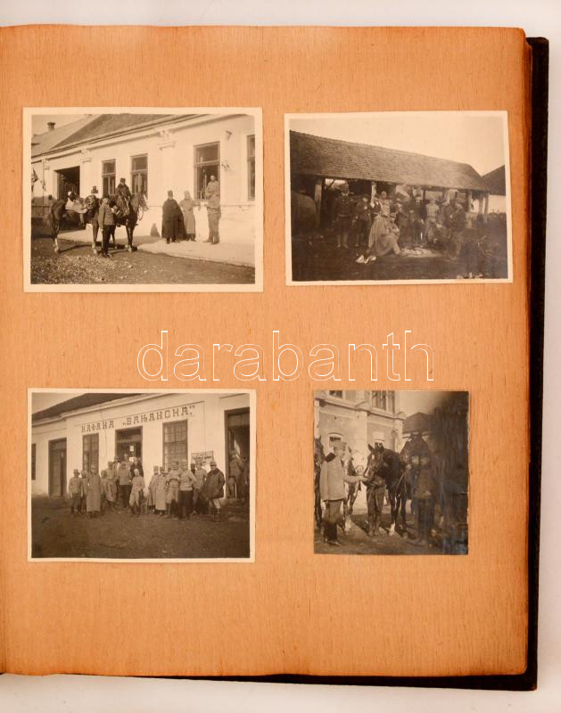 1914-1915 Tartalmas I. világháborús frontnapló. Rendkívül változatos és gazdag képanyaggal a balkáni frontról. Benne sok fotó a seregekről, főtisztekről, Károly trónörökösről, magyar hadihajókról, balkáni városokról autókról, repülőkről. Nagyon érdekes anyag, sok fotó feliratozott. Kb 200 kép albumban /