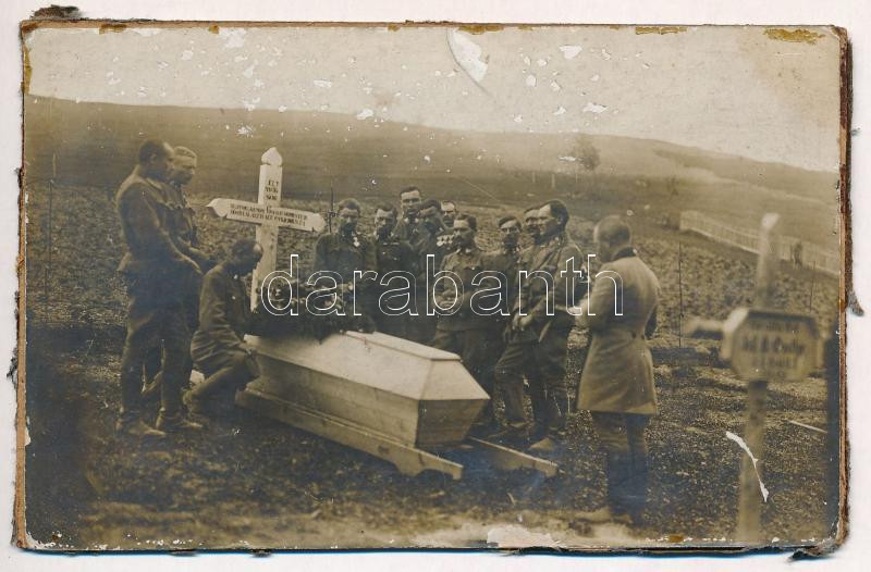 Leírás: 1917 június 21. Bujtor János őrmester búcsúztatása, temetése, kartonra ragasztva, 9x14 cm
