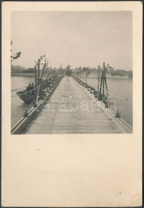 cca 1940 Átkelés a ponton hídon, jelzetlen fotó, 9x6 cm https://www.darabanth.com/hu/276-Gyorsarveres/276.0/Festmeny-mutargy-papirregiseg-egyeb/Militaria~200026/cca-1940-Atkeles-a-ponton-hidon-jelzetlen-foto-9x6-cm~II1414912