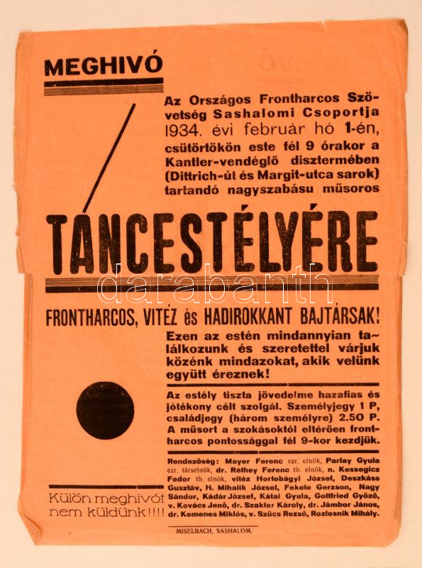 1934 meghívó az Országos Frontharcos Szövetség Sashalmi Csoportjának t... https://www.darabanth.com/hu/276-Gyorsarveres/276.0/Festmeny-mutargy-papirregiseg-egyeb/Nyomtatvanyok~200028/1934-meghivo-az-Orszagos-Frontharcos-Szovetseg-Sashalmi-Csoportjanak-tancestelyere-31x22-c~II1412520