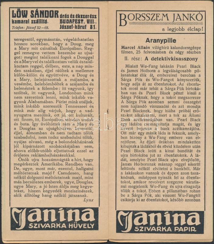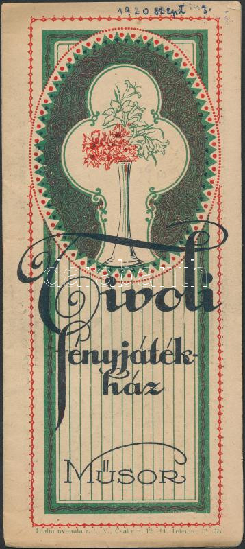 cca 1920 Budapest, a Tivoli fényjátékház műsorfüzete számos reklámmal,... https://www.darabanth.com/hu/276-Gyorsarveres/276.0/Festmeny-mutargy-papirregiseg-egyeb/Nyomtatvanyok~200028/cca-1920-Budapest-a-Tivoli-fenyjatekhaz-musorfuzete-szamos-reklammal-az-Aranypille-filmszi~II1414952