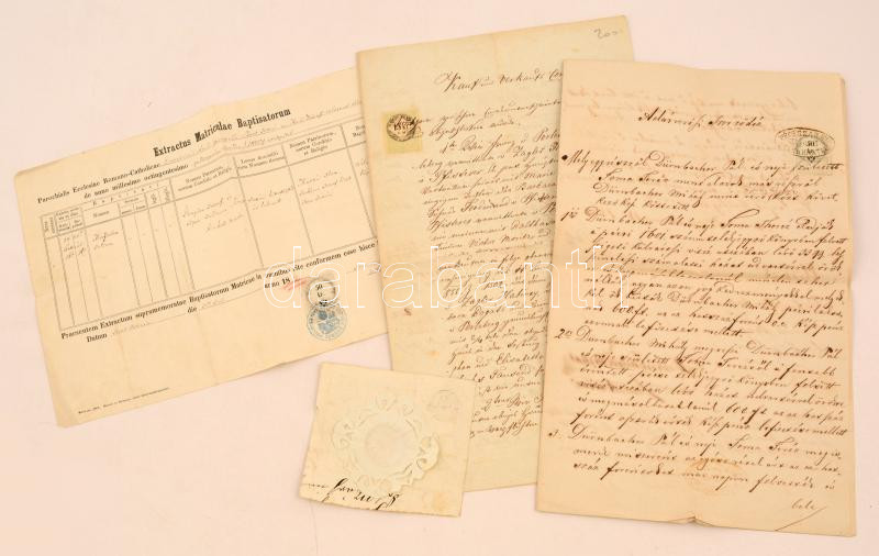Leírás: cca 1850-1860 4 okmánybélyeges okmány, egyiken 15kr CM okmánybélyeggel