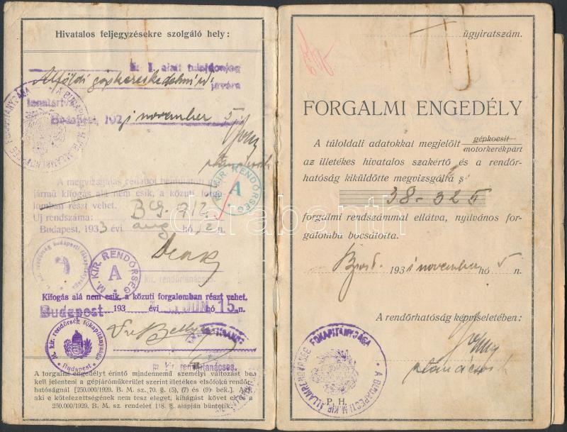Leírás: 1931 Bp., Gépjármű forgalmi engedély Ford autó számára