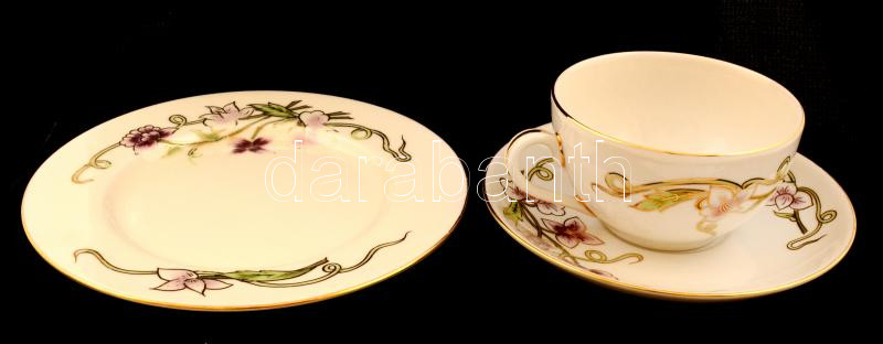 Leírás: Zsolnay tavasz mintás teás csésze és alj +süteményes tányér, kézzel festett, hibátlan, jelzett
