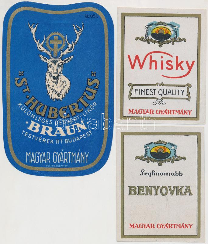 Leírás: 3 db italcímke(St.Hubertus, Benyovka, Whisky)