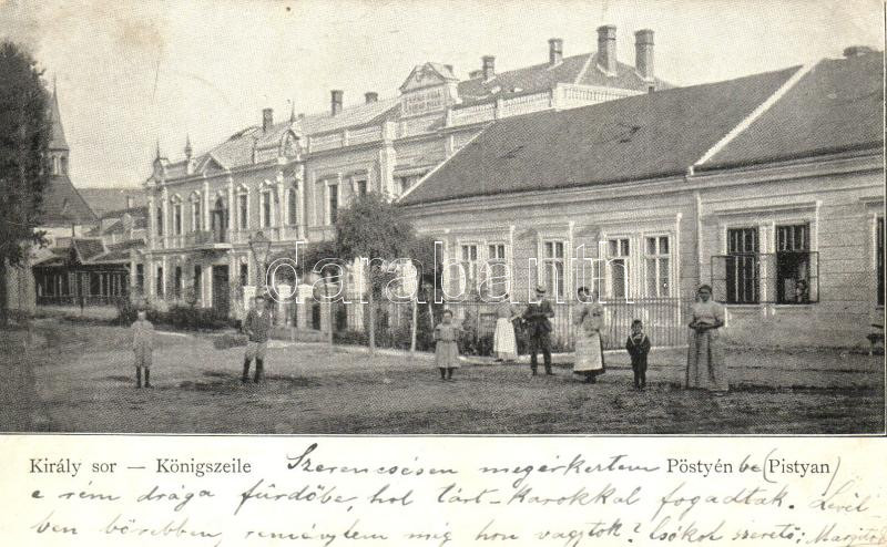 1899 Pöstyén, Piestany; Király sor / street (EK) https://www.darabanth.com/hu/276-Gyorsarveres/276.0/Kepeslapok/Felvidek~7/1899-Postyen-Piestany-Kiraly-sor-street-EK~II1413902