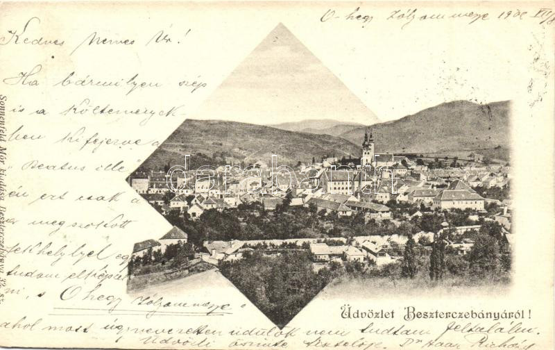 Leírás: Besztercebánya, Banska Bystrica; Látkép, kiadja Sonnenfeld Mór / general view (vágott / cut)