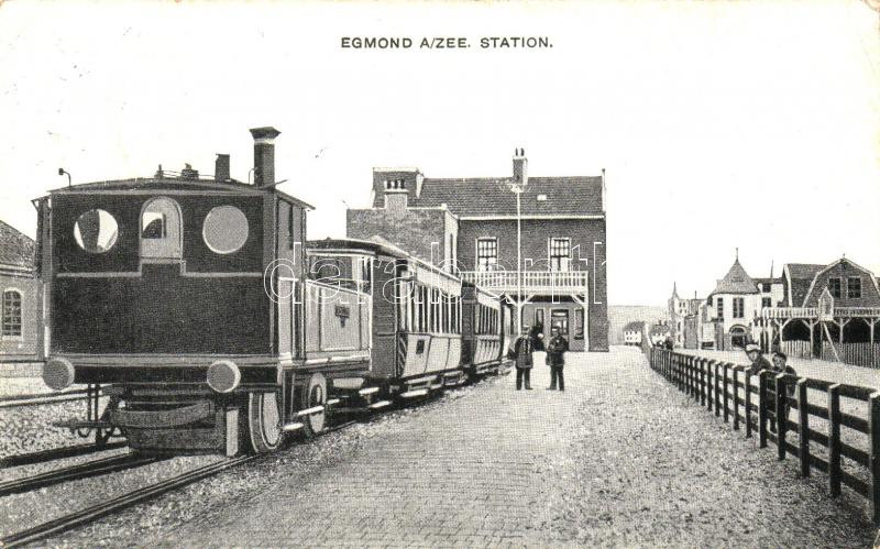 Egmond aan Zee, Railway station, train (EK) https://www.darabanth.com/hu/276-Gyorsarveres/276.0/Kepeslapok/Hollandia~37/Egmond-aan-Zee-Railway-station-train-EK~II1412275