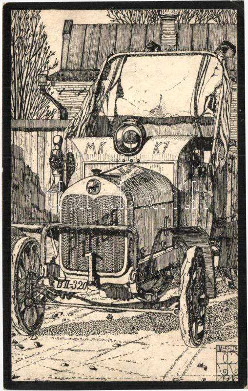 Feldzug 1914-1916, Lastwagen der K.u.K. Munitions-Kraftwagenkolonne 7. Rittmeister Streit / Military Trucks of K.u.K. Ammunition motor convoy. 7, Captain dispute s: Julius Richter
