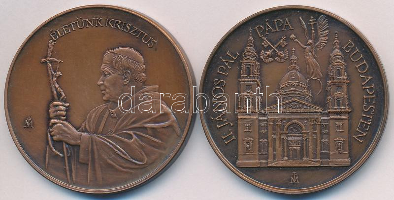 Leírás: Fritz Mihály (1947-) 1991. "Életünk Krisztus" Br emlékérem (42,5mm) + 1991. "II. János Pál Pápa Budapesten" Br emlékérem (42,5mm) T:2