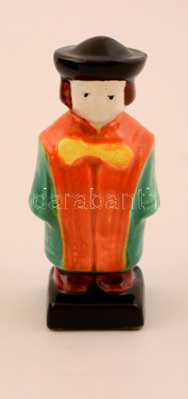 Leírás: Bodrogkeresztúri kerámia gulyás, kézzel festett mázas kerámia, jelzett, apró lepattanással, m: 10 cm