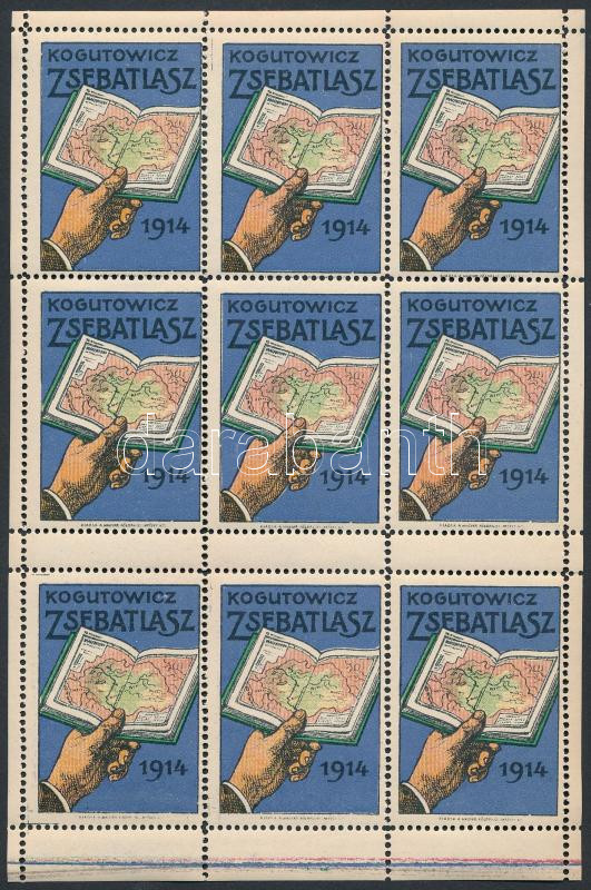 Leírás: 1914 Kogutowicz zsebatlasz 3 x 3-as levélzáró kisív (zöld)