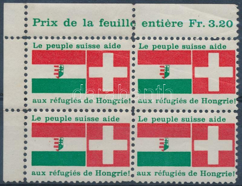 Leírás: Svájci adománybélyeg az 1956-os magyar menekülteknek négyestömb (törés)