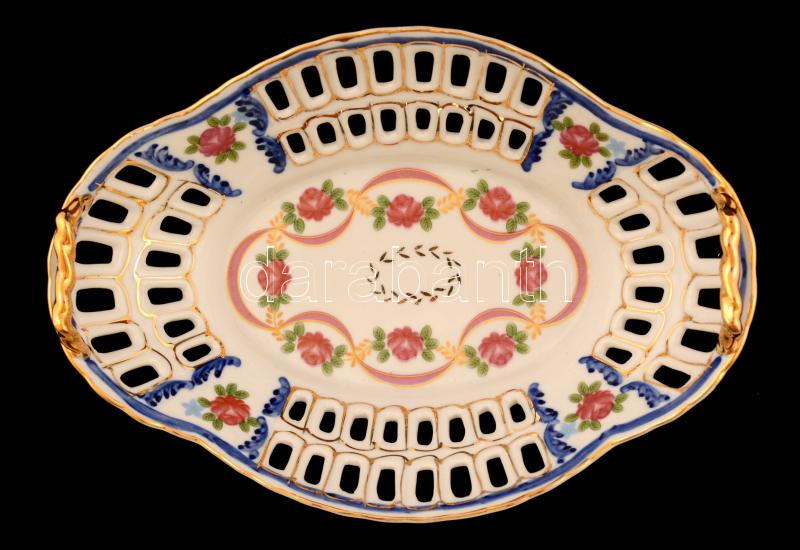 Leírás: Marco Polo porcelán áttört tál, matricás, jelzett, kopásnyomokkal, 24×17 cm