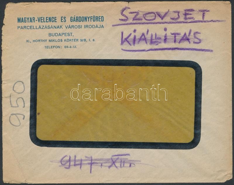 Leírás: Magyar-Velence és Gárdonyfüred Parcellázásának Városi Irodája boríték