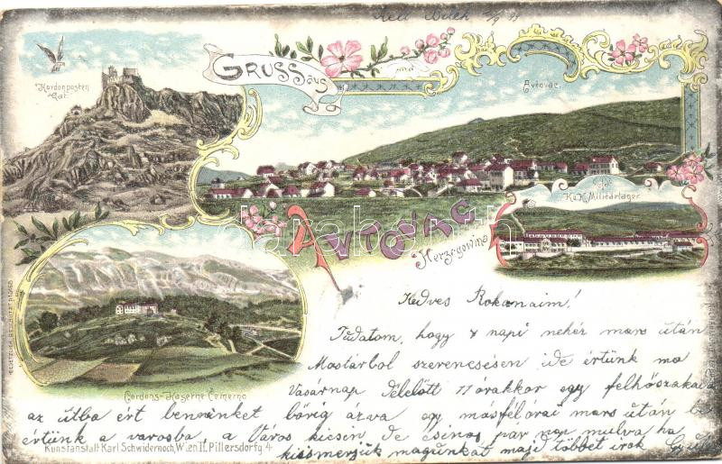 Leírás: Avtovac, K.u.K. Militarlager, Cordons-Caserne Cemerno, Kordonposten / military barracks, floral, Art Nouveau litho (EB)